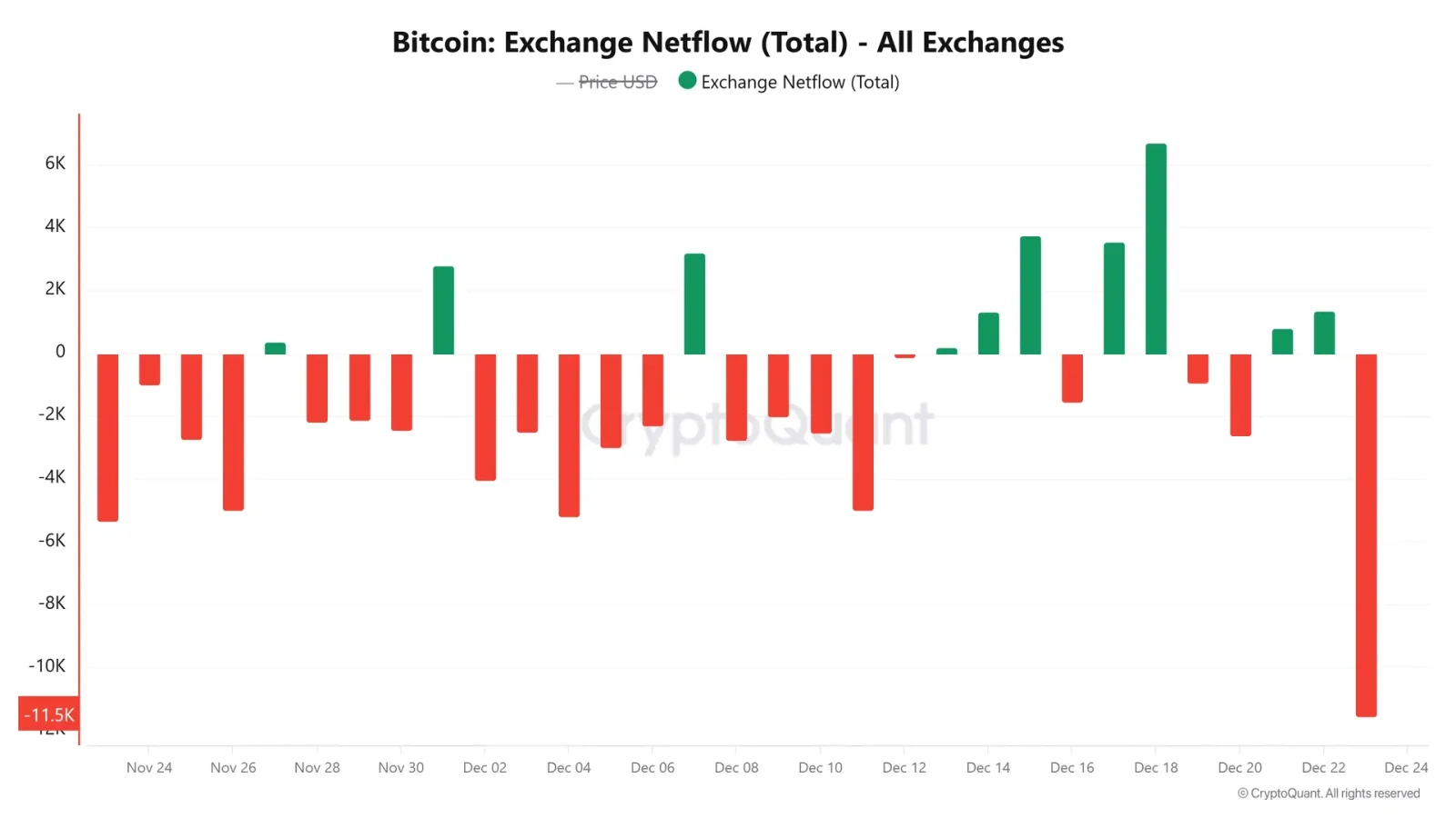 Bitcoin exchange netflows, daily (source: CryptoQuant).